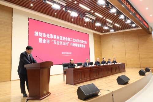 2025年11月18日,濰坊市光彩事業(yè)促進會第二次會員代表大會暨全市“萬企興萬村”行動現(xiàn)場推進會在濰坊壽光召開。市委常委、秘書長、統(tǒng)戰(zhàn)部部長趙緒春出席會議并講話,壽光市委書記李鵬致辭,市委統(tǒng)戰(zhàn)部分管日常工作的副部長李全吉主持會議,市委統(tǒng)戰(zhàn)部副部長、市工商聯(lián)黨組書記、常務(wù)副主席劉興成當選市光彩事業(yè)促進會會長。集團總裁朱九洲當選市光彩事業(yè)促進會副會長并作表態(tài)發(fā)言。